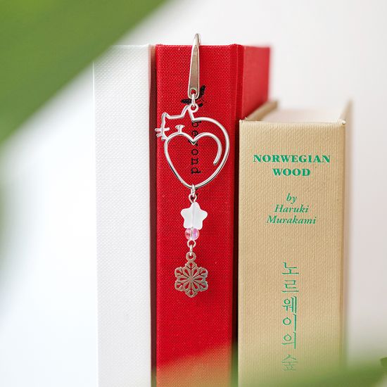 써지컬스틸 눈꽃 고양이 책갈피 금속 북마크 겨울