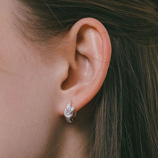 제이로렌 큐빅 프레첼 원터치 실버 귀걸이 M03962