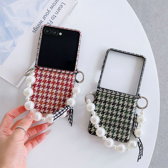 갤럭시z플립 7 6 5 4 3 체크 패턴 스트랩 가죽 케이스