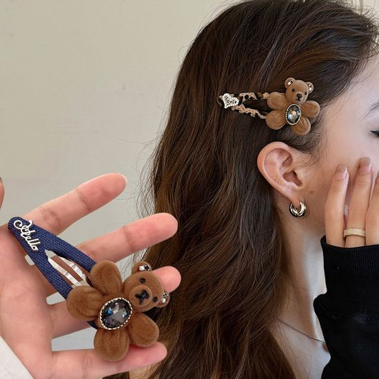 곰돌이 큐빅 뚝딱핀 머리핀 벨벳 옆 앞머리 헤어핀 삔