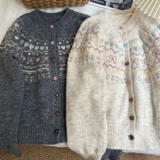 포근 핑크 노르딕 니트 가디건