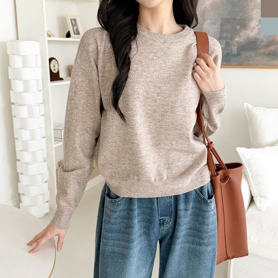 CAT 1091 여자 캐시미어 모던 라운드 기본 니트