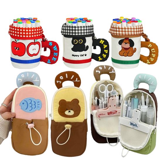 동물 캐릭터 세우는 스탠딩 패브릭 천 필통 파우치