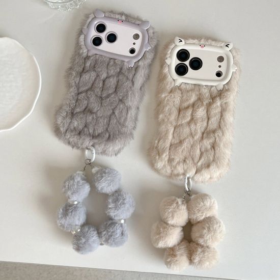 아이폰17 16 15 14 돼지 카메라보호 털 스트랩 케이스