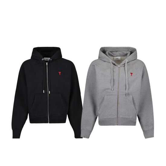 아미 AMI 스몰하트 로고 자수 후드 집업 자켓