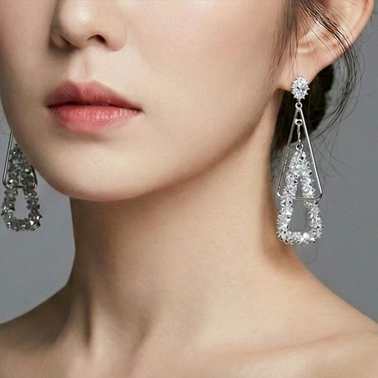 [쥬아나윤]925은침 드롭 귀걸이 삼각 화려한 이어링
