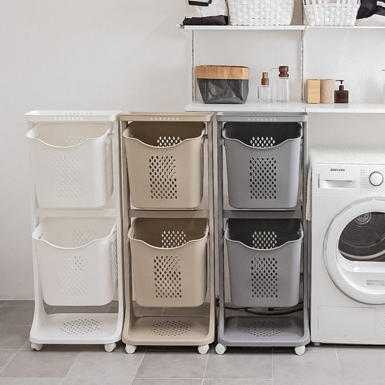 스탠다드 통기성 좋은 대용량 2단 빨래바구니