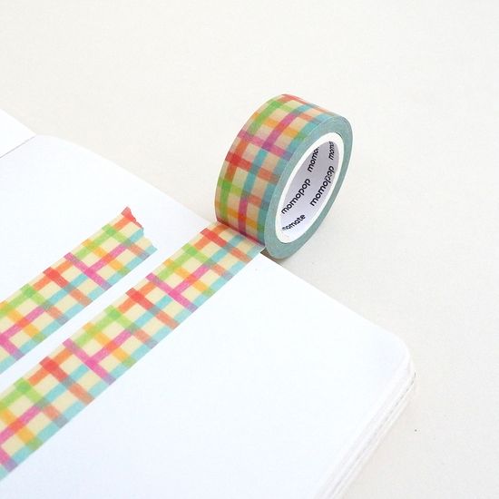 모모마테 빈티지 색연필 체크 마스킹테이프