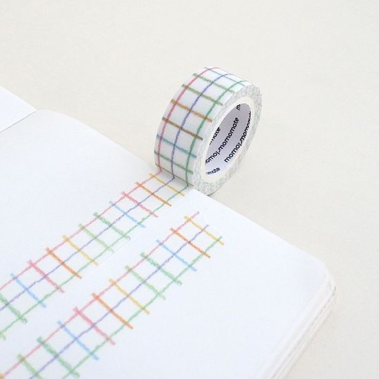 모모마테 거친 색연필 체크 마스킹테이프