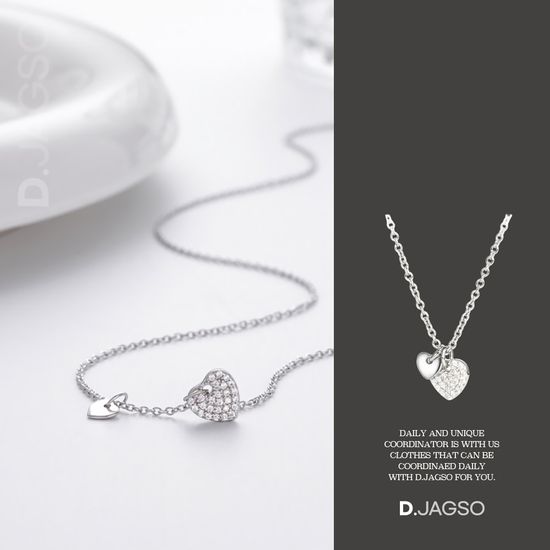 여성 투 팬던트 사랑스러운 하트 큐빅 목걸이