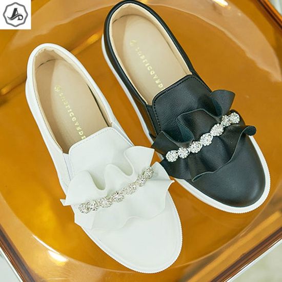 [애슬릿]키높이 슬립온 셔링 큐빅 장식 통굽 단화 4cm