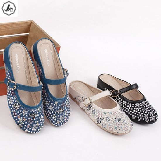 [애슬릿]메리제인 뮬 스트랩 큐빅 블로퍼 발편한 속굽