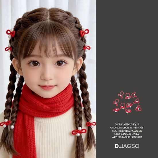 어린이 아동 진주알 포인트 레드 헤어 머리끈