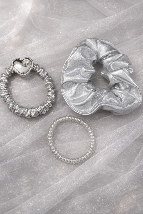 3종 실버 머리끈 헤어 스크런치 악세사리 곱창밴드