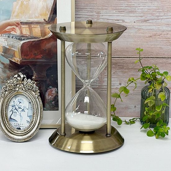 브론즈 철제 인테리어 유리 화이트 모래시계 30분