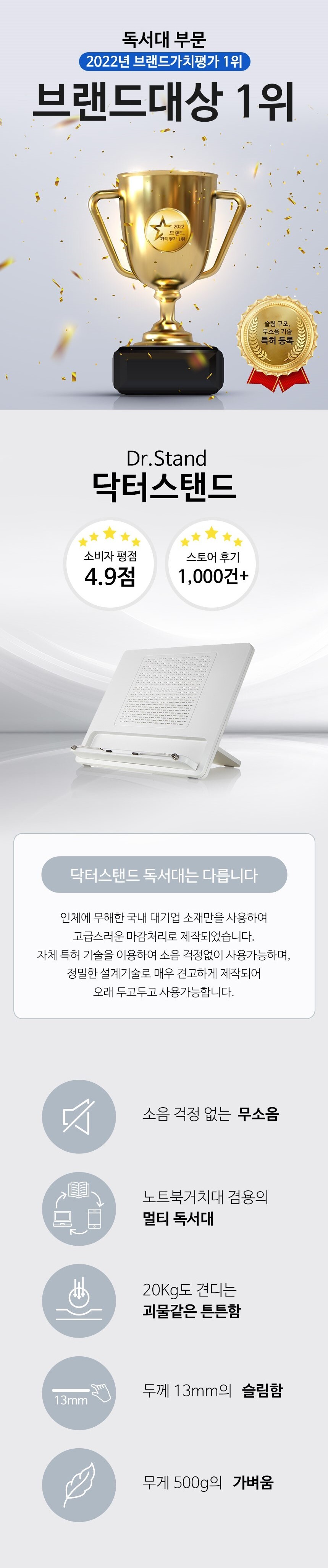 닥터스탠드 휴대용 무소음 멀티 독서대 [NEW]카멜추가