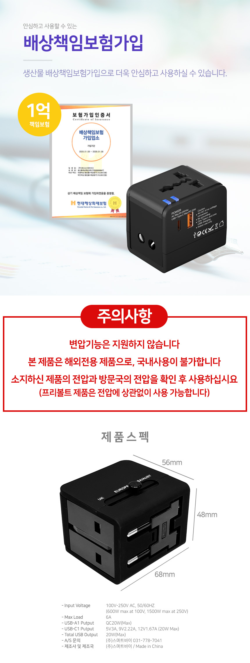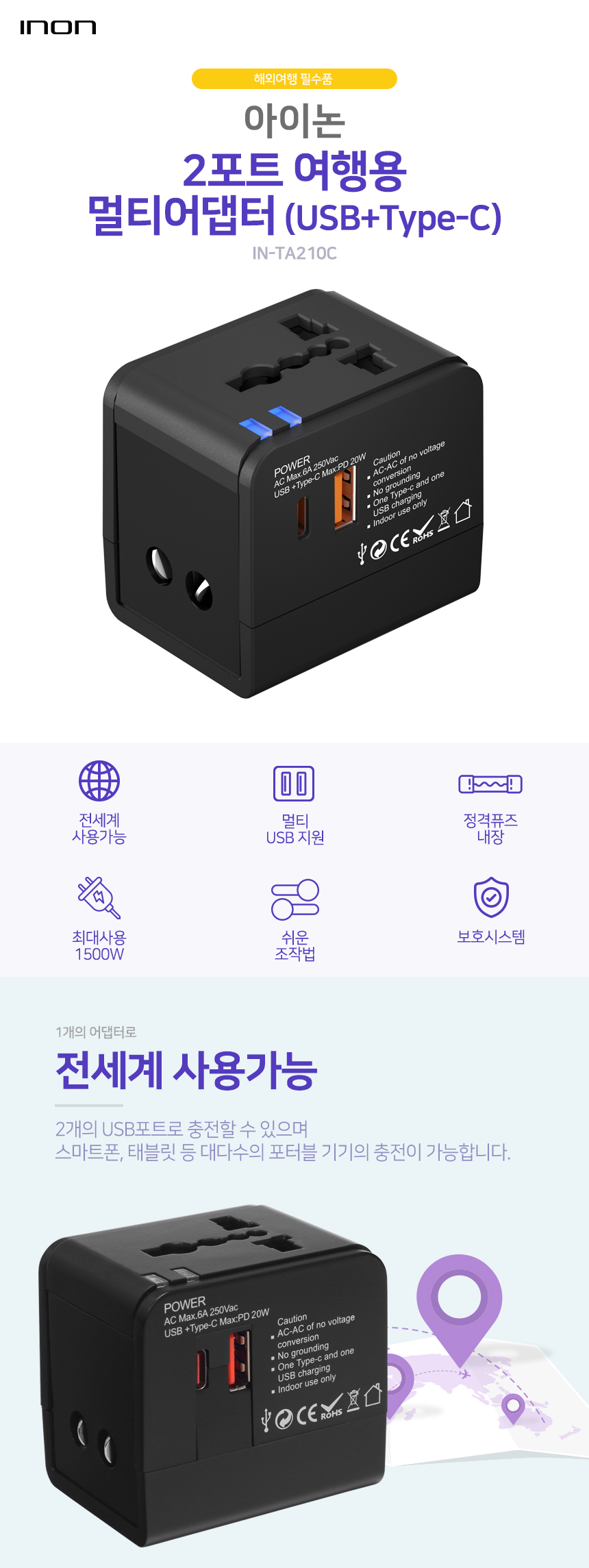 아이논 PD20W USB 2포트 해외여행용 어댑터 IN-TA210C