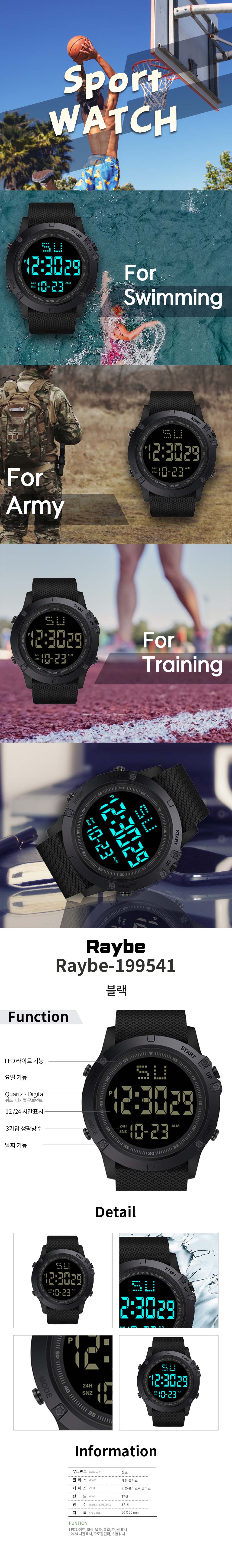 레이비 군인시계 블랙 디지털 전자 손목시계
