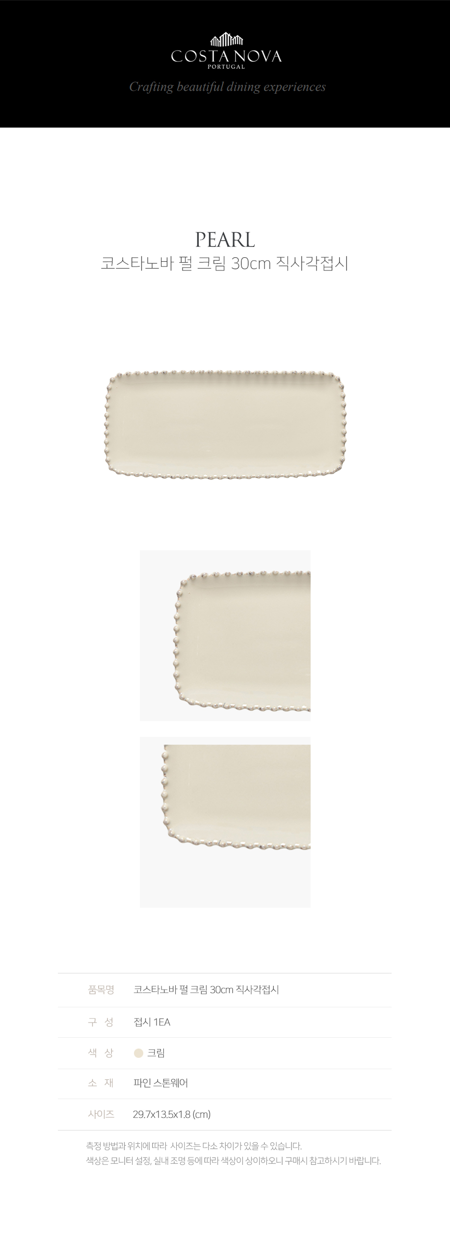 [코스타노바] 펄 크림 30cm 직사각접시